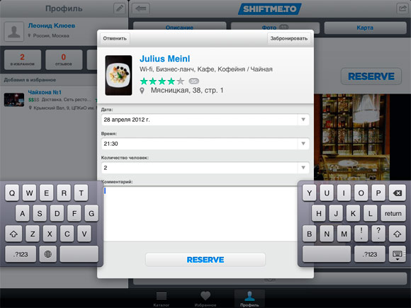 Итак, онлайн-бронирование. Чтобы заказать столик, вы можете воспользоваться сайтом, либо универсальным приложением для iPhone и iPad. Из существенных отличий в функциональности — разве что поиск по названию и по станции метро, первое есть только на сайте, второе — только в приложении (!). Не станем задаваться целью изучить структуру сайта, она удачна и вполне понятна. Вопрос поинтереснее: смогли ли разработчики сохранить юзабилити, «упаковывая» функции в программу?