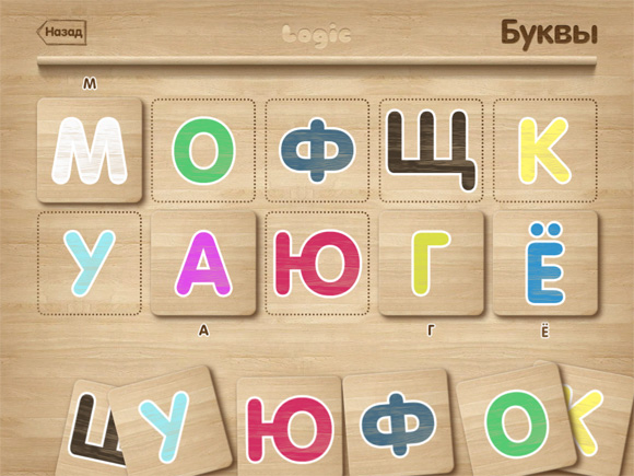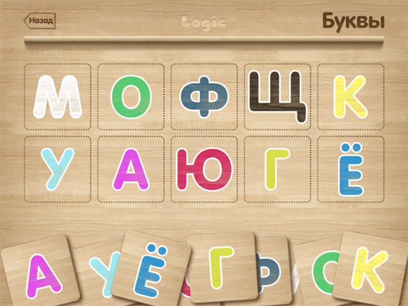 Логика — это обучающая игра для самых маленьких. Например, мой 2-летний сын был в восторге и без особых проблем угадывал, где и какую дощечку с буквой нужно расположить. В демонстрационной версии есть только один уровень — «Буквы». Полная версия также поможет ребенку разобраться с цветом, цифрами, фигурами и развить память, находя одинаковые пары картинок на игровом поле.