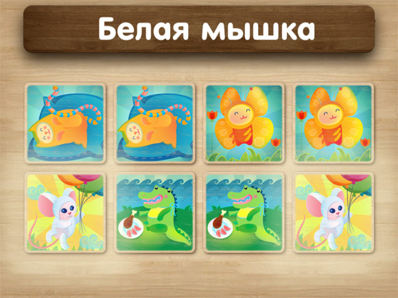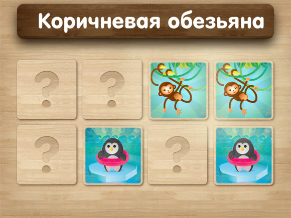 Найди парную картинку — название игры говорит само за себя. Занятное и красочное приложение позволит ребенку развить память. В демонстрационной версии есть лишь самое простое поле 4х2 (4 парных картинки), а вот полноценная игра может предложить и более продвинутые варианты с полями 6×4 (12 парных картинок), 8×5 (20 парных картинок). Каждая картинка озвучена и содержит сопроводительный текст, а система голосовых поощрений (когда угадываешь совпадение с первого раза) понравилась даже взрослому мне. Помимо нескольких уровней сложности в полной версии приложения стоит отметить возможность добавлять собственные карточки из фотогалереи.