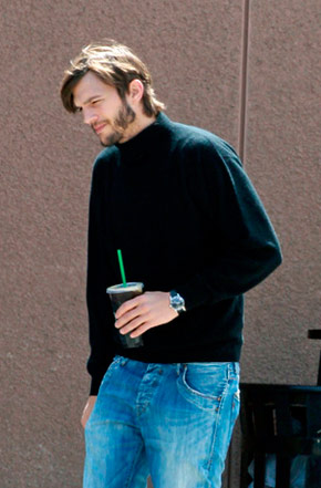 Интересно, а для какого временного отрезка в фильме Кутчер станет использовать знаменитый комплект одежды Джобса? Тут стоит учитывать, что Стив, хоть он и придумал себе униформу очень давно, использовать её постоянно начал лишь с конца 90-х. Вы найдёте уйму фотографий из более раннего периода, где Джобс носит что угодно, кроме пресловутой водолазки! Единственное, что нам известно более-менее достоверно — что сюжет картины как раз и заканчивается где-то ближе к 2000-м. Вы скажете: на снимках Кутчер находится в образе молодого Джобса «образца» 80-х. Мы ответим: едва ли он стал бы ходить по улицам в гриме. Возможно, костюм как раз-таки нужен Кутчеру для съёмок в концовке фильма. А, возможно, и нет — но тогда будет иметь место фактологическая ошибка.