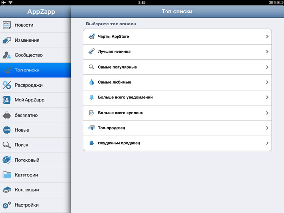 Да, AppZapp крут и ядрён, умеет многое, только запутаться во всем этом изобилии можно в два счета. На скриншоте выше вы увидели лишь малюсенький кусочек разветвленного интерфейса версии для iPad, а вот, что открывается глазу неподготовленного пользователя при запуске программы: