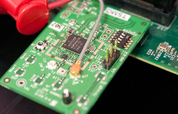 Демонстрационный образец радиомодуля Broadcom BCM4334 (находится в центре платы расширения), показанный на MWC 2012