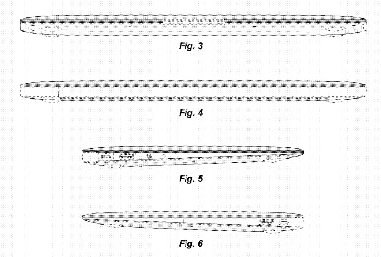Пощёлкайте по изображениям — посмотрите, сколько там сплошных линий, и сколько пунктирных. Хотите описание патента в двух словах? «Тонкий ноутбук». Apple удалось запатентовать совершенно общий вид устройства с массой тех самых контекстных деталей, которых в конечном продукте может и не быть. Разъёмы, выемка для открытия крышки, ножки, винты на нижней половине корпуса — этого, считайте, в патенте нет. Есть просто тонкий ноутбук.
