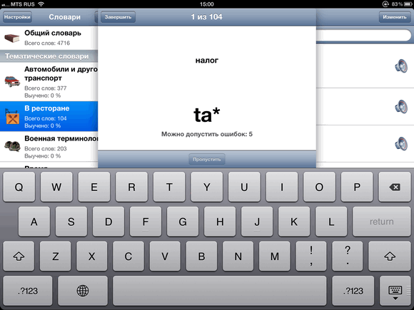 По результатам выполнения каждого теста выдаётся общий результат, по которому можно отслеживать самые «проблемные» места. Можно создавать и свои словари, а затем проводить по ним аналогичные тесты. Приложение универсально для обеих платформ. Смело рекомендую эту программу всем, кто по долгу службы часто сталкивается с английским языком или просто интересуется им в учебных целях. Хорошая «обучалка» для любого уровня знания английского.