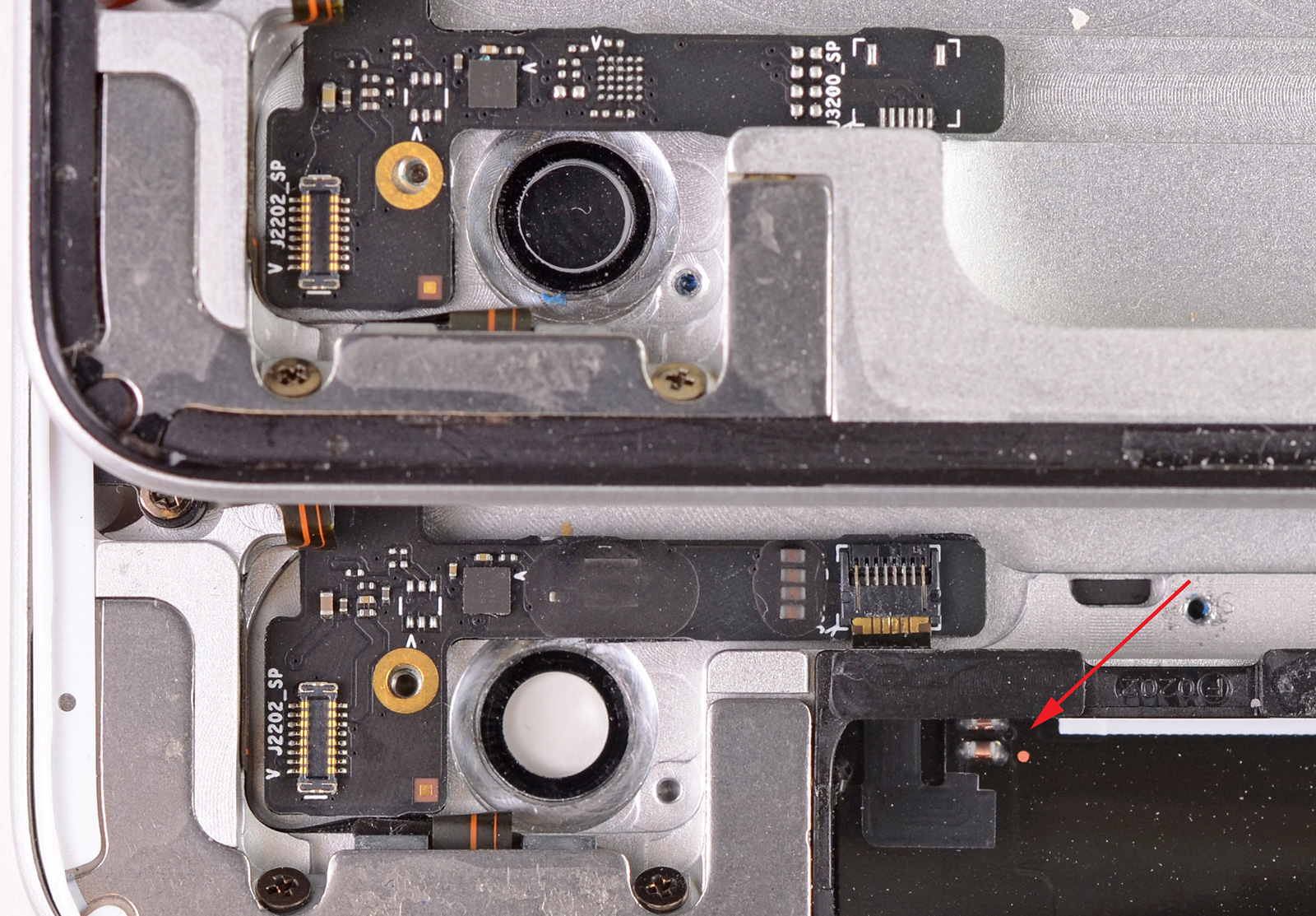 Журналист Wired даже обратился к кудесникам из iFixit, которые при разборе планшетов Apple не акцентировали внимание на каких-то хитрых датчиках, просто их не обнаружив. Но косвенное доказательство все-таки существует. В 3G/4G-версии устройства в указанном месте есть небольшая пластиковая панель с некими электронными компонентами, один из которых вполне может оказаться датчиком приближения. В Wi-Fi версии iPad такой панели нет. Ниже на фотографии стрелкой показан этот якобы датчик (снимок кликабелен):