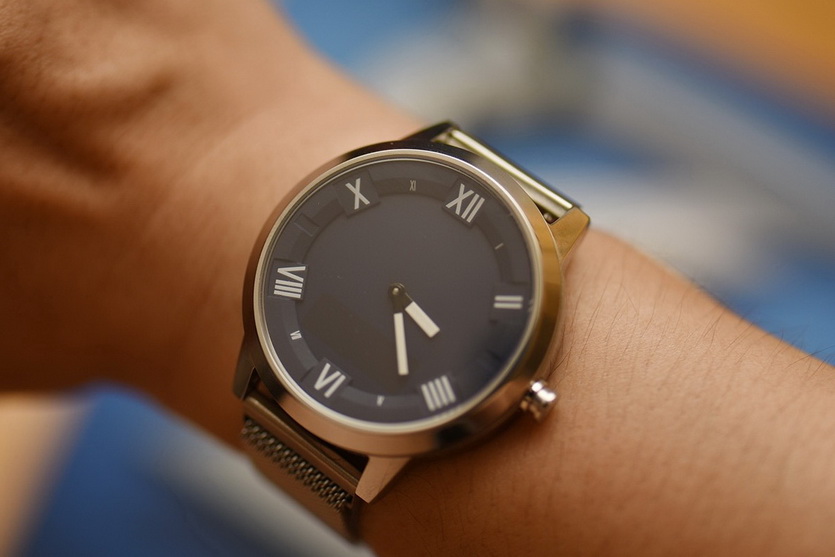 Одновременно показывают время на механическом циферблате и уведомления/пульс/шаги на электронном.