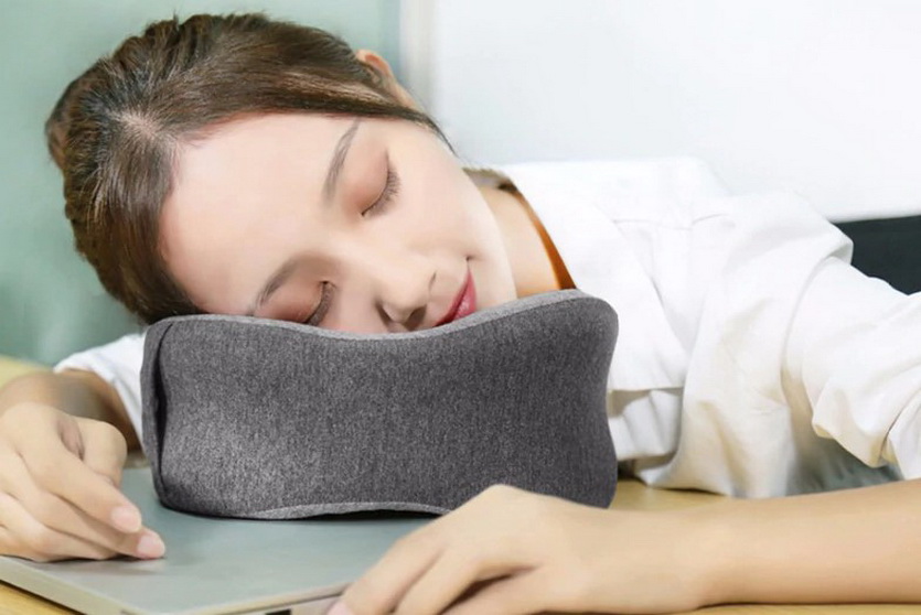 Шейная подушка на аккумуляторах, легонько разминающая затекшую шею. Её можно свернуть и взять с собой в поездку, используя как туристическую подушку.