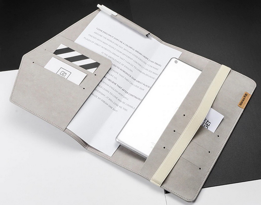 Папка со множеством карманов из синтетической кожи. Не мнется, держит форму, не боится воды. Внутри можно разместить полпачки бумаги А4, множество мелочей формата банковской карты и планшет.