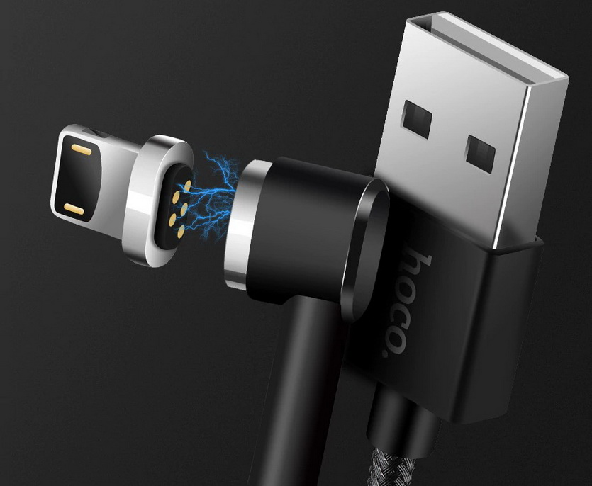 Но все же. главное в нем — магнитный разъем, подключаемый к Г-образному штекеру. Универсальный, в комплекте Lightning, microUSB и USB-C.