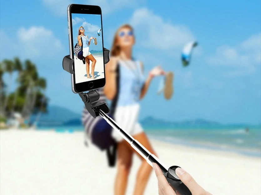 Точно так же монопод превращается в настольный штатив на ножках, позволяя управлять съемкой на смартфоне с помощью Bluetooth-пульта.