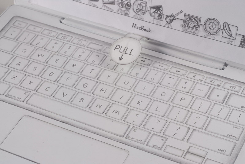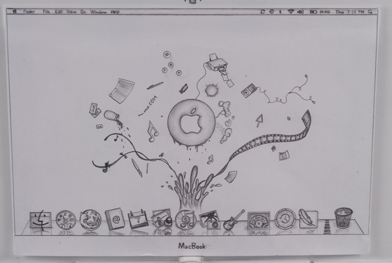 На фотографиях – работа студента с руками, растущими из правильных мест. Кайл Бакнер чуть-чуть поразмыслил над вопросом, который волнует многих сегодня – “будет ли netbook Apple?” и решил представить свое собственное видение. Несколько часов работы вылились в белый минибук, разрисованный простым карандашом.