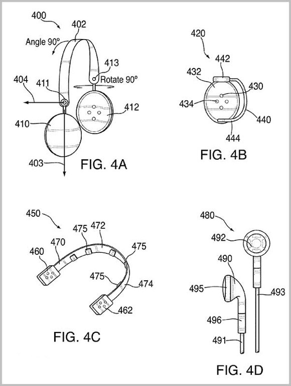 Apple видит такой аксессуар сразу в нескольких вариантах: помимо обычных наушников, динамики можно вставить и в «затычки», расположив их в той части корпуса, что будет торчать из ушей пользователя. Мотивы инженеров компании понятны, но мы искренне надеемся, что эта идея останется среди нереализованных. Достаточно того, как орут стандартные комплектные наушники (легендарные белые «капельки») вне ушей их владельца. Лучше бы In-Ear улучшили. [ap]