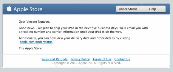 Далее в письме предлагается взглянуть на дату доставки, перейдя на свою страничку заказа, но, как пишут очевидцы, пока особо точных данных там нет. Тем не менее, официальное письмо уже много значит.