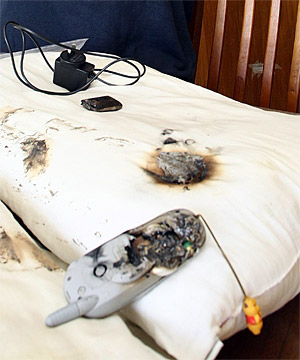 Кроме ноутбуков в число погорельцев вошли телефоны: Samsung, Siemens, Motorola, какие-то откровенно китайские. И снова ни одного современного хотя бы полуконкурента iPhone/iPod Touch. Да что такое? Не может быть! И вот, ближе к вечеру уже, как по заказу, на phonearena появляется информация о возгорании HTC Touch Pro в заднем кармане джинс (первая фотография). Неожиданно и весьма своевременно.