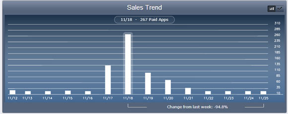 Благодаря этому количество скачек в день перевалило за 250. В большинстве благодаря именно российскому рынку. В Америке продажи никак не изменились, оставаясь на уровне 5-7 в день.