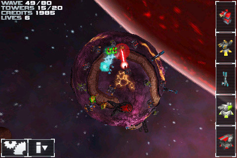 ngmoco:), ни капли не волнуясь по поводу смайлика, зарегистрированного идущим ко дну “Суперфоном” как товарный знак, направляет все свои силы на StarDefense. И демонстрирует рабочую версию игры, так сказать “из первых рук”. Даже два раза.