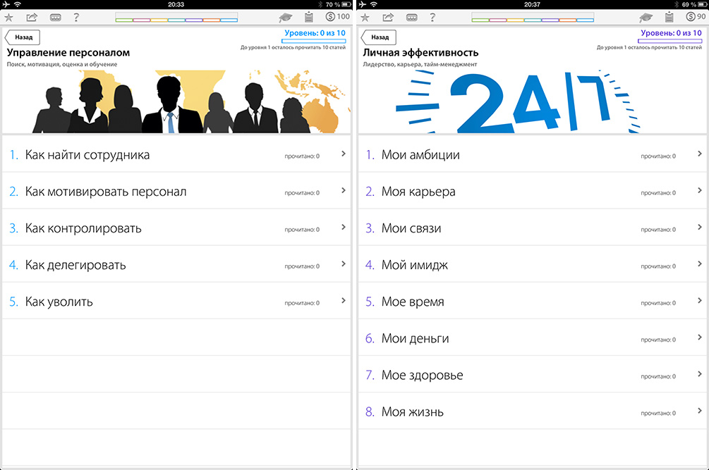 Чтобы определиться с порядком цен, посчитаем, сколько денег понадобится для получения уровня, который даст доступ к курсу «Школа руководителя». Для этого необходимо выполнить 14 заданий, а покупка статей для их выполнения обойдется примерно в $250. Получается даже дешевле стандартной годовой подписки на любой из отдельных журналов, при этом у пользователя есть доступ к информации из всех трех изданий и возможность выбора статей под свои конкретные потребности.