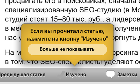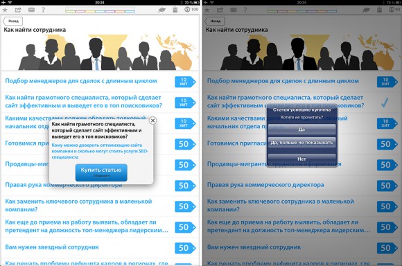 Уверен, вы обратили внимание на синие бейджики справа. Вот тут начинается самое интересное. Во-первых, приходит понимание, что «Бизнес в кармане» предлагает статьи не бесплатно, что естественно, учитывая платность подписки на журналы.