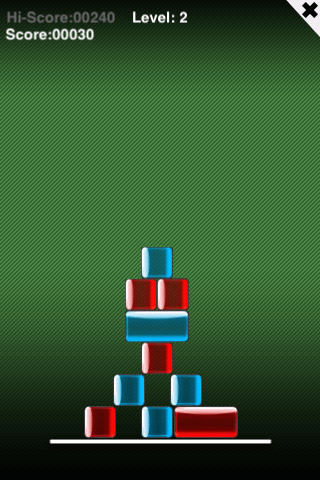 Ваше задание заключается в уничтожении всех синих кирпичей и сохранении максимального количества красных. Синие прибавляют очков, красные – отнимают. Количество начисляемых очков зависит от размера кирпича. Синие кубики, валящиеся с платформы, дают на 50% больше очков, красные – действуют таким же образом, но наоборот. Игра заканчивается, когда количество набранных Вами очков становится равным нулю. Максимальный результат фиксируется.