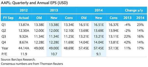 Бен Рейцес из инвестиционного банка Barclays Capital отмечает, что за последние три месяца цена AAPL упала почти на 17%. Инвесторы не уверены в том, что ждёт компанию в 2013 году. Их настроение должны поднять традиционно сильные продажи предыдущих трёх месяцев, приходящихся на рождественские праздники. В предыдущем году за аналогичный квартал Apple удалось поставить абсолютный рекорд доходности. Возможно, в этот раз рубеж будет преодолён вновь.