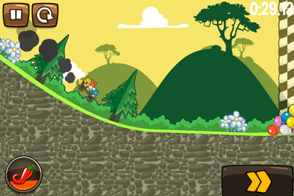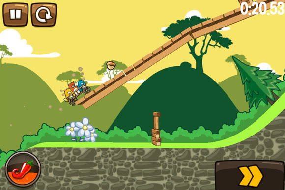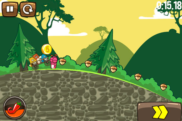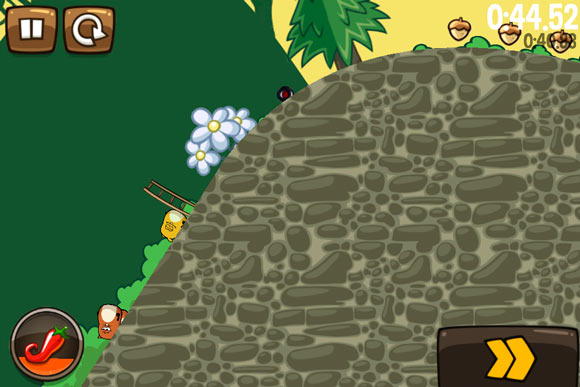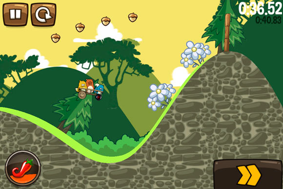 На пути к финишу в любом уровне белкам предстоит преодолеть крутые спуски и подъемы. Разбиться нельзя даже перевернувшись. Игра все равно вернет вас в правильное положение, правда на это будет затрачено некоторое время. Повозка двигается не сама, игроку нужно нажимать клавишу ускорения. Еще одна клавиша используется для активации чили и еще большего ускорения. Помимо этого нужно регулировать наклон повозки. Это можно делать либо клавишами, либо наклоняя устройство.