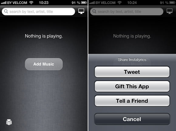 Как работает Instalyrics? Здесь нет ничего загадочного и секретного. Существует два варианта использования приложения. В первом вы запускаете Instalyrics во время воспроизведения музыки на устройстве. Тогда программа берет информацию из тегов композиции и выполняет поиск по названию. После этого вы перенаправляетесь в Safari, где будет открыта страница одного из архивов лирики с искомой песней. Минусов у такого подхода ровно два: не все пользователи, к сожалению, держат свою музыкальную коллекцию в надлежащем виде, что может затруднить поиск. Ко второму минусу вернемся несколько позже.
