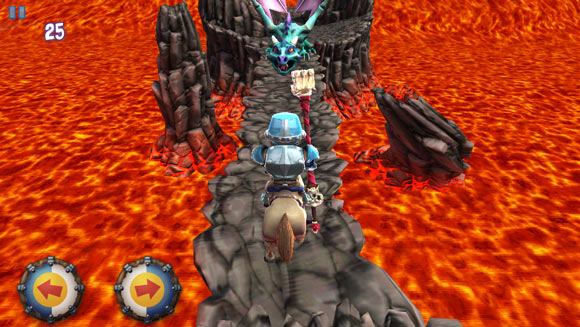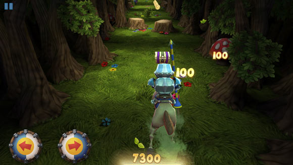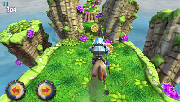 Теперь о неприятных моментах. Первый лично для меня – управление. Не совсем понятно, что мешало разработчикам сделать до кучи управление гироскопом, но его нет. Все равно на выбор остаются целых три варианта, как с виртуальными стиками, так и простыми свайпами по экрану вашего устройства. Следующая неприятность, которая со временем обращает на себя внимание – это чрезмерная хлипкость коня, который везет на себе нашего рыцаря. К самому коню вопросов нет, но вот игра обсчитывает некоторые моменты как столкновения с препятствием или недолет до другого края обрыва. А это ведет к чекпоинту или началу уровня. Причем визуально все выглядит нормально и никаких предпосылок для падения с лошади у героя нет.