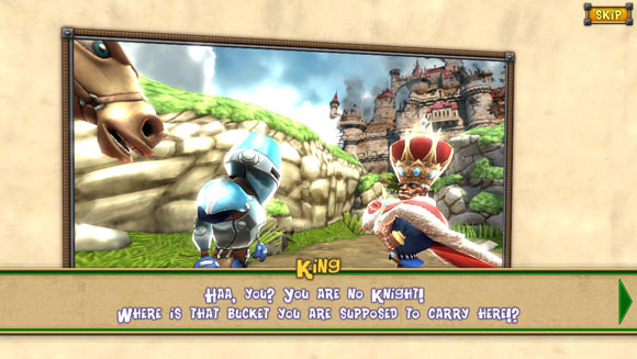 Не будем вдаваться в подробности знакомого всем и каждому сюжета. Скажу лишь, что ведомому нами рыцарю на верном коне предстоит в очередной раз спасти королевство. Во время прохождения сюжетной линии нам периодически будут демонстрироваться диалоги и вставки на движке игры. Во время бесед рыцаря с персонажами время от времени игроку предлагается выбрать один из двух вариантов дальнейшего развития событий. Приятный бонус.