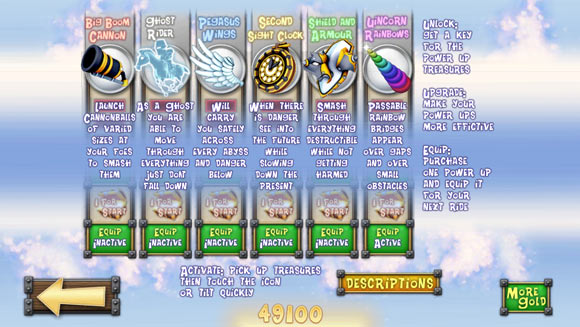 Помимо верного копья можно использовать различные умения, а их прокачка требует денег. Деньги же выпадают из убитых врагов, разрушенных препятствий и сундуков. Традиционный замкнутый игровой круг. Всего умений семь и все они могут быть использованы для облегчения жизни рыцаря. Напоследок отмечу, что помимо сюжета с делением на уровни есть свободный забег. Там все любители подобных игр смогут отвести душу и поставить запредельный рекорд.