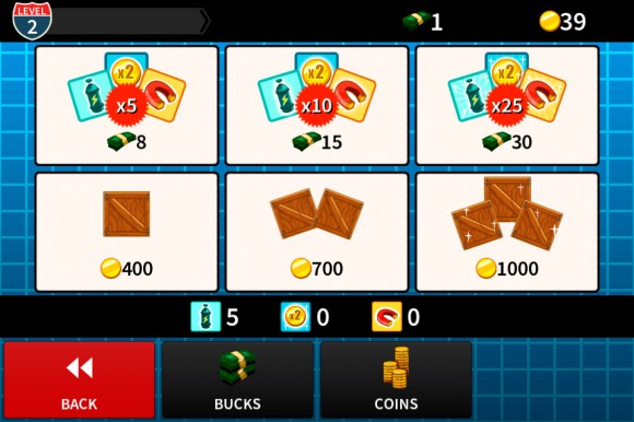 В любой уважающей себя игре есть магазин. Extreme Road Trip 2 — не исключение. Лавка тоже имеется, правда ассортимент там скудный. Можно закупиться магнитами для притягивания монет, закисью азота для бешеного разгона или попытать счастья, купив и разбив ящик. Кстати, такие ящики с бонусами попадаются и в игре, но доступны они только после повышения ранга и достижения следующего уровня. Коробки в играх научили меня тому, что при их открытии часто можно остаться с носом. В данном случае такого происходить не будет: в каждом ящике находится что-нибудь полезное.