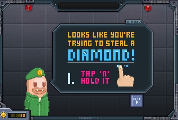Признаюсь честно, длиннющую историю о главном герое игры в туториале я даже не читал. Более того, она здесь вообще не нужна, так как игрушка и без нее интересна. Представьте себе, что вам придется играть за не самого удачливого охотника за алмазами. Он легко может добраться до драгоценностей, но стоит лишь протянуть за ними загребущую руку, как сразу же включается сирена и активизируется охранная система. Приходится уворачиваться и не выпускать из рук сокровище.