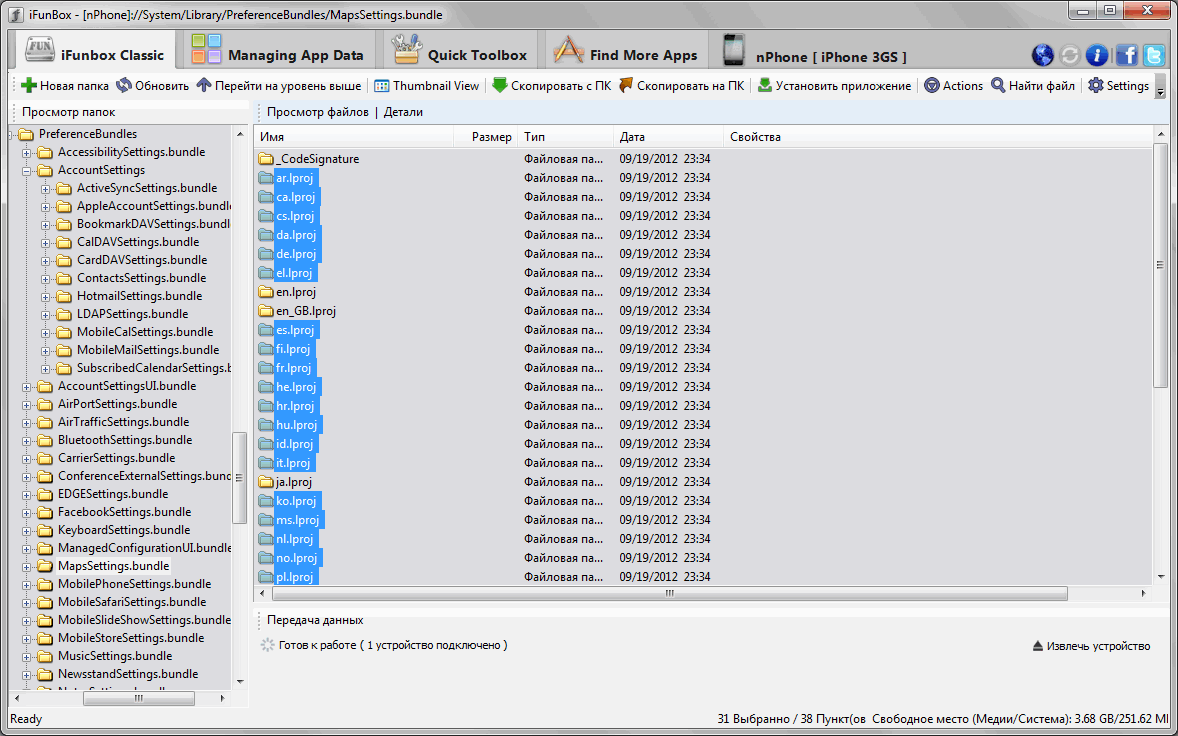 В итоге в большинстве стандартных программ останется по пять пакетов .lproj, папка _CodeSignature и что-нибудь ещё. Выключайте свой гаджет и перезагружайте его. Если все было сделано верно, он загрузится нормально и порадует вас чуть меньшим временем включения и загрузки приложений.