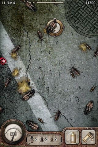 Далее как-то втягиваешься. И не жалко уже ни пальцы, ни экран. Долбишь по бегающим тварям, подбираешь различные бонусы, стараешься не задевать божьих коровок, которые непонятно за какой острой приправой из всем известного перетертого одноименного корня прилетели на эту заброшенную помойку, кишащую тараканами.