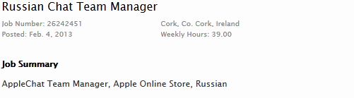 Мы искренне соскучились по новостям о перспективах прихода розницы Apple на российский рынок. Поток информации по теме внезапно заглох к наступлению Нового года и с тех пор заполнился сплошными догадками без каких-либо доказательств. Поэтому любопытная вакансия на Apple.com, опубликованная сегодня, не могла пройти мимо нашего внимания.