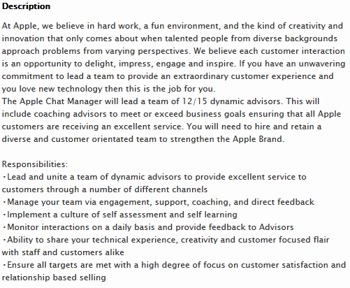 Apple ищет менеджера, который будет работать с командой из 12-15 консультантов. Подчиненные явно будут осуществлять техническую поддержку в официальном онлайн-магазине компании. Будущий сотрудник переместится в город Корк в Ирландии — прямо в штаб-квартиру европейского подразделения Apple, которому подчиняется и русский офис.