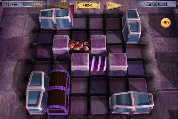 Процесс игры представляет собой очень сильно модифицированные пятнашки. В каждом уровне у нас есть один или несколько сундуков, которые нужно передвинуть к точке выхода с уровня. Сложность в том, что на прямой, по которой нужно двигать заветный ящик, наверняка будет находиться несколько препятствий, от которых необходимо избавиться.