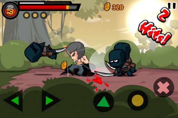 Стрелки «влево-вправо» — это движение в указанном направлении. Нажатие одной из них вместе со стрелкой, указывающей наверх — прыжок. Круглая кнопка отвечает за серию ударов, ну а «крестик» помогает сделать долгий замах, что очень эффективно при схватке сразу с несколькими противниками. Красный иероглиф, который подсвечивается с течением времени, позволяет произвести супер-удар, словно взрывом сметающий врагов на своем пути. «Навешивать» противникам можно и в прыжке. Обычно такой прием валит их с ног, что помогает выгадать несколько секунд.