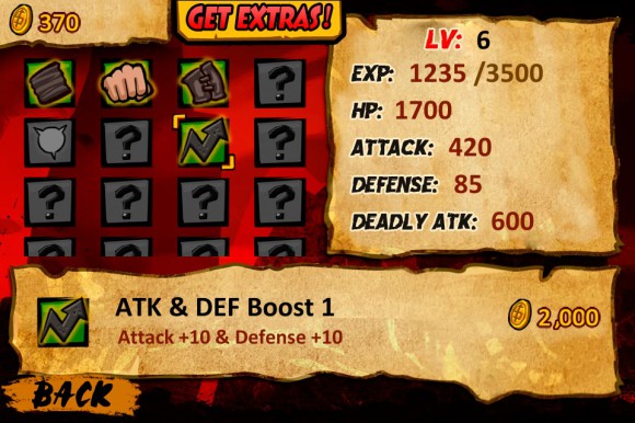 На золотишко можно прикупить артефакты, которые увеличат выносливость или ловкость мстящего воина. Чтобы ускорить сбор монет, можно приобрести их за реальные деньги (In-App Purchase). Если честно, то я не нашел в этом никакой необходимости. Уровни нормально проходятся и с теми предметами, которые можно заполучить только посредством честно заработанной внутриигровой валюты.