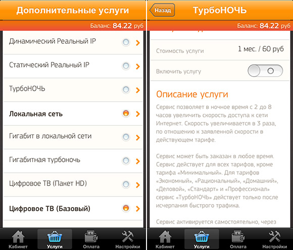 Что касается упомянутых выше услуг, вернее, их большого количества, то есть среди них так называемые бустеры, когда ширина канала или скорость доступа в локальную сеть повышается на небольшой срок, будь то несколько часов, дней или одна ночь. Их использование станет намного проще и удобнее благодаря мобильному приложению: запустил программу → два клика → и вот домашний интернет готов к загрузке очередного сезона любимого сериала в HD-качестве.