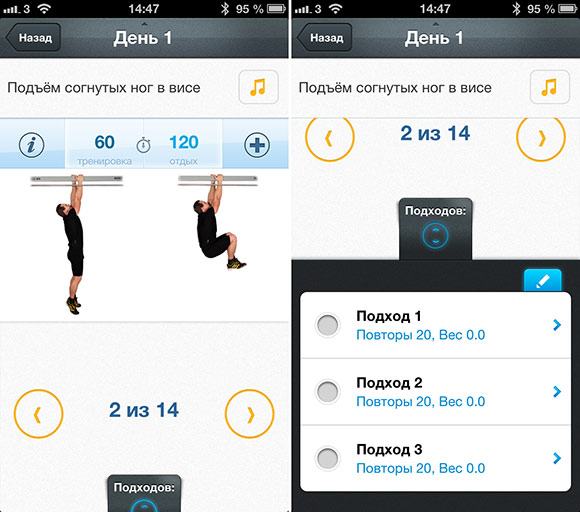 Как видите, всяких программ тут немеряно и затеряться в них легко. Но, лучше, когда такие программы уже есть, чем когда их нет, и вообще не знаешь с чего начать. Кстати, Fitness не просто предлагает программу, но и проводит с вами тренировку: закончил подход — отметил в программе, еще один завершил — снова отметил, перешел к следующему упражнению. Можно просто отключить мозг и следовать инструкциям, что удобно. Кроме того, предварительно задаются еще и личные цели: хочешь ли похудеть или, наоборот, набрать массу, либо просто поддерживать то, что уже есть? Аж голова кругом идет, столько всего накручено: