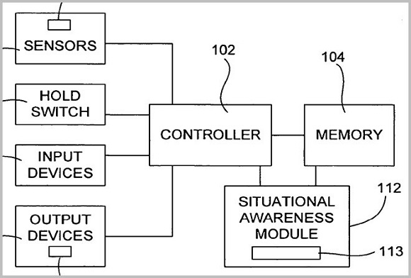 На самом деле все гораздо проще, чем могло показаться на первый взгляд. Бюро патентов и торговых марок США опубликовало очередную патентную заявку калифорнийской компании. В ней описывается схема оснащения портативного устройства рядом дополнительных датчиков, информация с которых передается на так называемый модуль ситуационной осведомленности. Упомянутый модуль интерпретирует полученные данные и выполняет одну из предустановленных команд. Это может быть включение вибрации в устройстве, воспроизведение музыки или спящий режим.