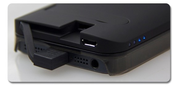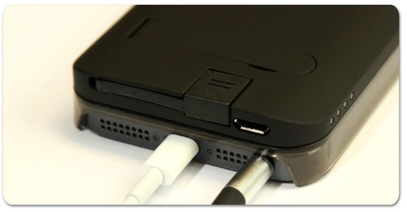 Интересно, что смартфон заряжается от аккумуляторного отсека с помощью крепкого эластичного Lightning-кабеля, который крепится в специальном кармашке. Такая конструкция позволяет оставлять открытыми все порты в нижней части корпуса iPhone 5.