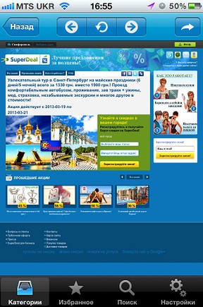 База обновляется каждый день десятками тысяч акционных предложений. Информация подаётся с учетом региона проживания, а удобный интерфейс с рубрикатором и каталогизацией не даст запутаться в потоке скидок и выгодных сделок.