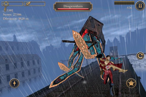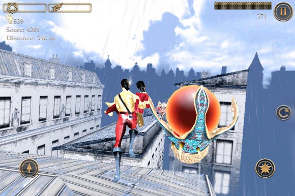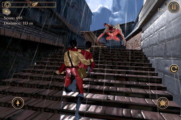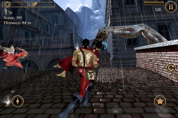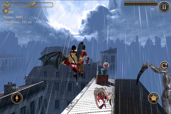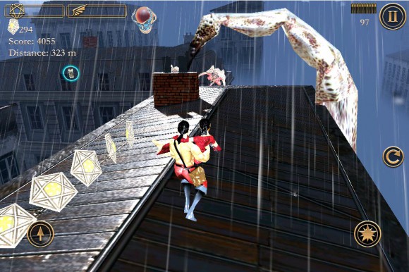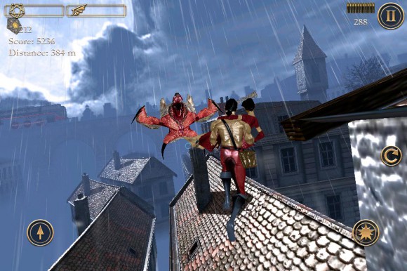 В вашем распоряжении находятся два персонажа: мужчина, который сломя голову мчит по скользким крышам, и его раненая зазноба, отстреливающаяся от назойливых монстров. По идее, при таком раскладе управление должно быть перегружено. Скажу лишь, что все выдержано на уровне, но имеющиеся и огрехи. Левая кнопка — прыжок. Две кнопки справа — стрельба и перезарядка. На закуску основной минус: перемещение осуществляется посредством наклона устройства, что в первое время может показаться очень неудобным. На мой взгляд, нужно было реализовать все с помощью свайпов.