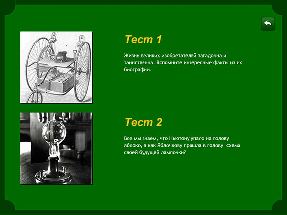 Обо всех наиболее значимых моментах в российской науке, повлиявших на весь мир, можно узнать из энциклопедии «Русские изобретения». Что касается ее оформления, то оно идентично таковому в «Навигаторе по будущему», за одним исключением — в программе также присутствует раздел тестов. Он простой, но позволяет проверить свои знания — мелочь, хотя полезная и приятная: