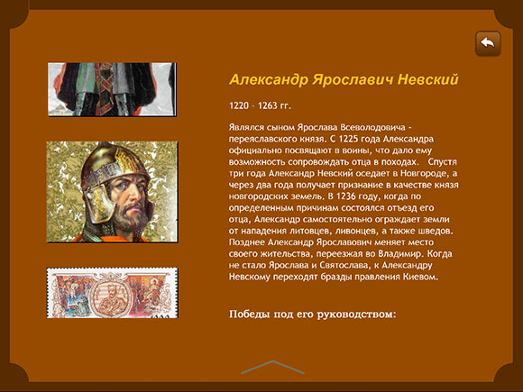 Остальные три энциклопедии будут интересны в первую очередь тем, кто не безразличен к истории и к военному делу. Так из приложения «Великие русские полководцы» можно почерпнуть немало полезной информации о героях державы, начиная с 900 года и заканчивая современной историей. Годы жизни, наиболее важные моменты в ней, заслуги и достижения, иллюстрации — все это есть.