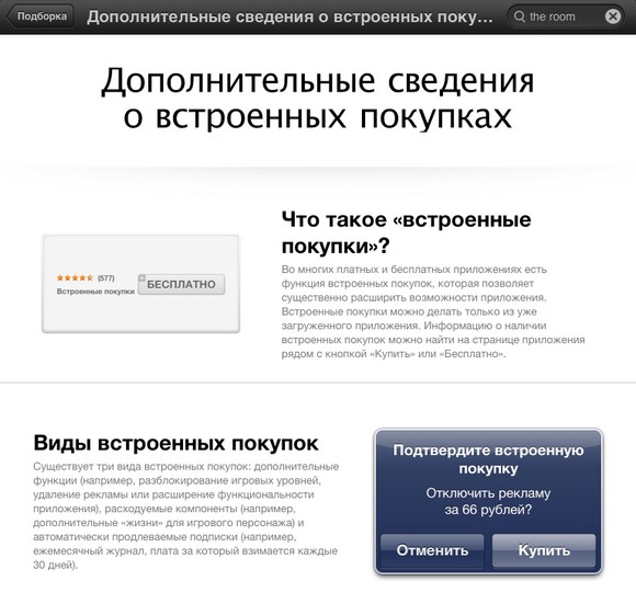 Внутриигровые покупки в бесплатных приложениях неизбежно становятся приоритетной моделью монетизации для большинства разработчиков игр. Если человек не разбирается в премудростях модели Free-to-play, такая «халява» может сорвать с кошелька огромные суммы денег. Apple вновь пытается сократить количество подобных инцидентов: теперь на главной странице App Store красуется баннер «Дополнительные сведения о встроенных покупках».
