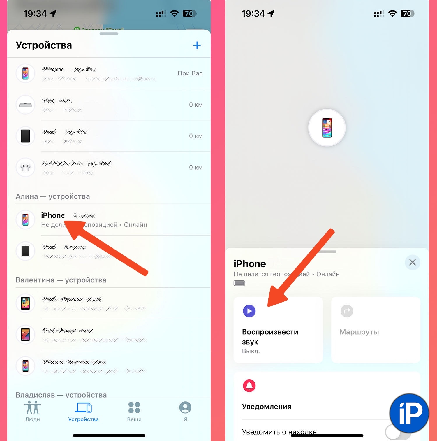 Как дозвониться: откройте приложение Локатор, найдите айфон родственника и нажмите кнопку Воспроизвести звук. Смартфон сначала завибрирует, а через несколько секунд включится громкий неприятный звук.