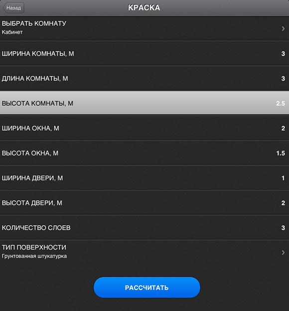 Реализация строительного калькулятора отличная в версии для iPhone и хорошая в варианте для iPad, но в последнем случае еще есть куда развиваться. Например, сделать пункты меню чуть крупнее, особенно это касается раздела «Проекты» — слишком уж шрифт мелковат. Кроме того, при вводе цифровых значений на планшете появляется QWERTY-клавиатура, а хотелось бы только цифровой с большими кнопками — это ускорит процесс ввода параметров помещений и расчета.
