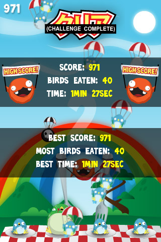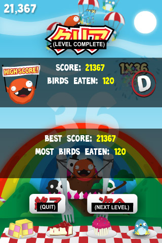 Собственно, вот и все. Весь смысл игры Must Eat Birds, в ходе которой пользователи просто обязаны кушать птиц с помощью небольших кругленьких помощников, только в этом и заключается. Игра выделяется из общей массы скорее даже не геймплеем, а своим оформлением. Эта колоритная азиатская поп-музыка, это обилие цветов… Больше всего умиляет английский перевод, который традиционно как-бы наляпан поверх оригинальных иероглифов. А что? Белые буквы стандартного шрифта поверх черных рамок – вполне оригинально для незатейливой аркады-развлекалки, стоящей не так уж и дорого.